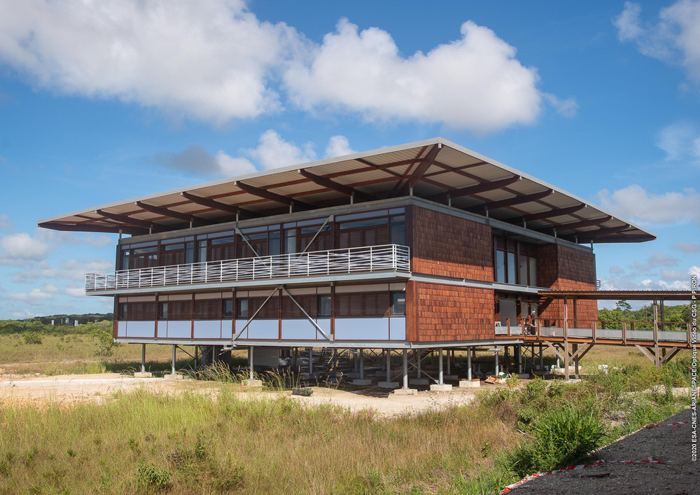 Type de bâtiment : situé à côté du Centre de Lancement, « cockpit » au sol du lanceur Ariane 6, Odyssée est un bâtiment tertiaire. Il accueille les équipes de la Direction du Transport Spatial (DTS) du CNES à Kourou.