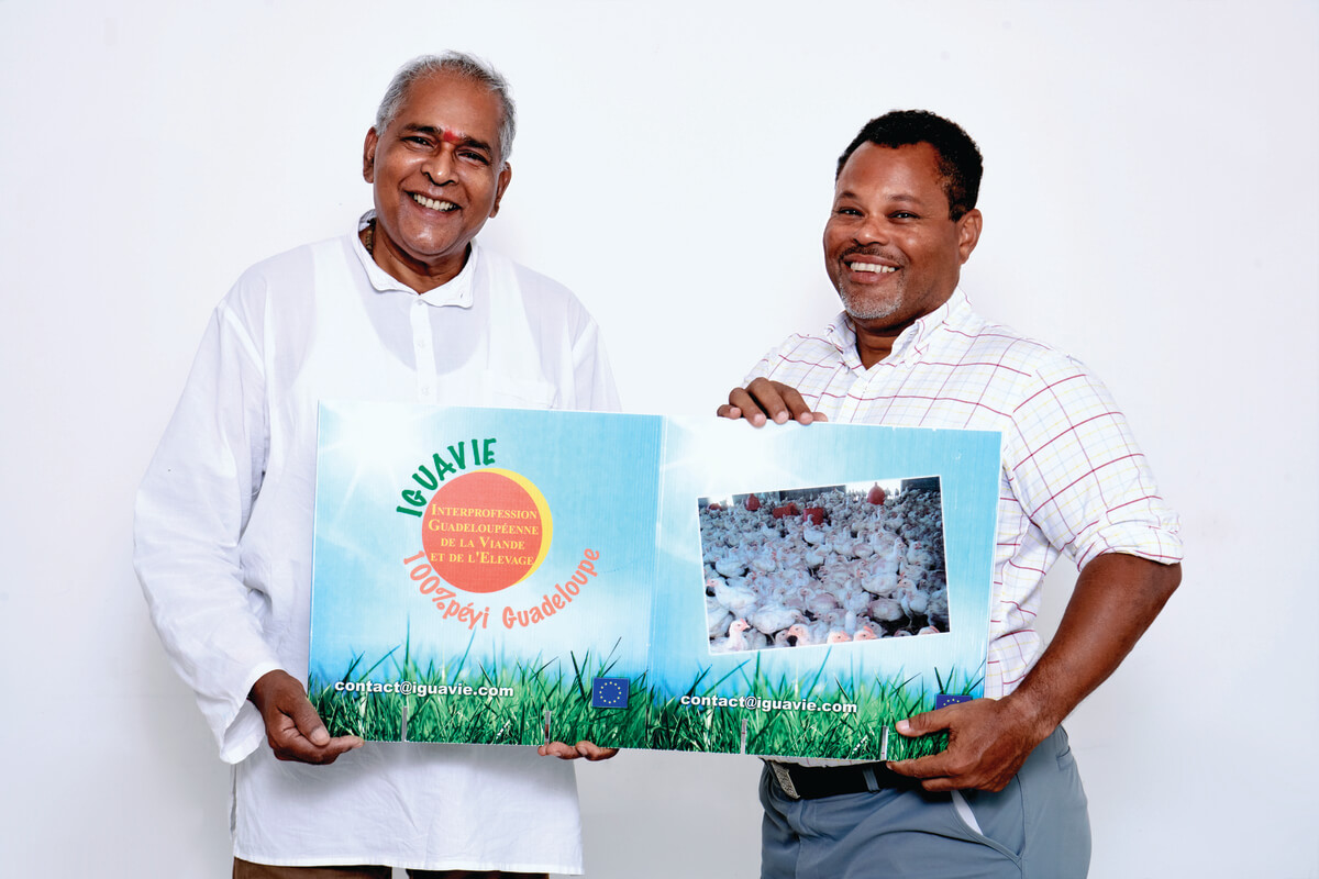 | Iguavie : une dynamique autour de sept filières L’Iguavie a été reconnue, par le ministère de l’Agriculture, interprofession de la viande et de l’élevage en novembre 2006. Elle est née dans un contexte difficile où toutes les coopératives d’élevage avaient déposé le bilan faute de financement de l’État et d’une bonne gestion. À ce jour, l’Iguavie regroupe sept filières : bovine, porcine, caprine/ovine, avicole (volaille de chair et œuf), cunicole (lapin) et apicole (abeille). Son objectif : structurer ces filières afin de regrouper l’offre de production locale et la commercialiser. L’interprofession compte, à ce jour, une trentaine d’organisations membres regroupant environ 1 500 actifs : éleveurs, provendier (fabricant d’aliment du bétail), transformateurs (abattoirs, ateliers de découpe, charcuterie), distributeurs (grandes et moyennes surfaces) et artisans bouchers. L’Iguavie permet à ces professionnels de se rencontrer et de travailler ensemble en interdépendance. L’interprofession les aide également à se développer, permet aux filières d’accéder aux aides européennes notamment le POSEI (programme d’options spécifiques à l’éloignement et à l’insularité) et assure la promotion des produits. |