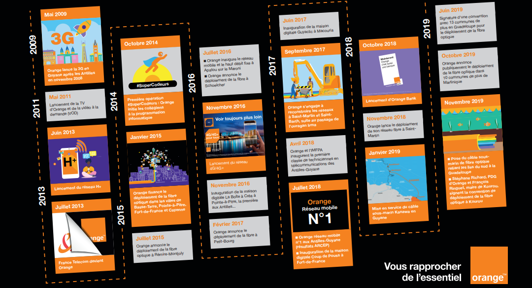 Retrouvez une sélection des faits marquants qui ont rythmé l’actualité d’Orange au travers de l’évolution des réseaux fixe et mobile, des actions de la fondation, de la responsabilité sociétale… autant d’illustrations de l’implication dans le développement des Antilles-Guyane.