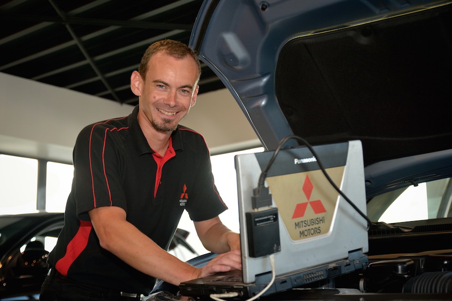 Avez-vous déjà rêvé de confier régulièrement votre voiture à un professionnel qui vous rappelle par SMS la date du rendez-vous, respecte le tarif établi lors du devis et vous remet votre voiture en temps voulu — parfois en avance ! — dans un état irréprochable ? Steeve Ballon le fait. Technicien référent de l’atelier Mitsubishi SGDM, M. Ballon reçoit la clientèle et s’attèle personnellement « aux dossiers épineux, à savoir les pannes les plus complexes », commente-t-il. Et ce, toujours avec le sourire.