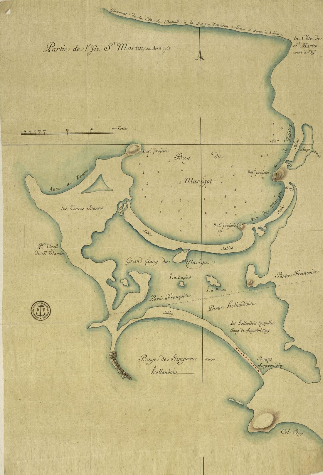 L’actuel chef-lieu de la partie française se structure peu à peu. La construction du Fort Louis démarre en 1789 en même temps que la prison en contrebas et domine une petite centaine de cases en bois. Puis en 1808, sous Napoléon, des ingénieurs dressent un plan cadastré de Marigot. Les familles de planteurs font construire des maisons bourgeoises au style colonial. On peut encore en voir certaines, rue de la République (jadis Grand rue), derrière laquelle sera bâtie l’église catholique en 1841.